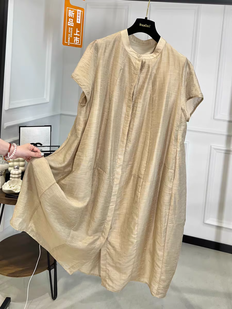 The Stand-Up Collar Button-Up Midi Dress has a clean tailored vibe, perfect for work or a casual day out.