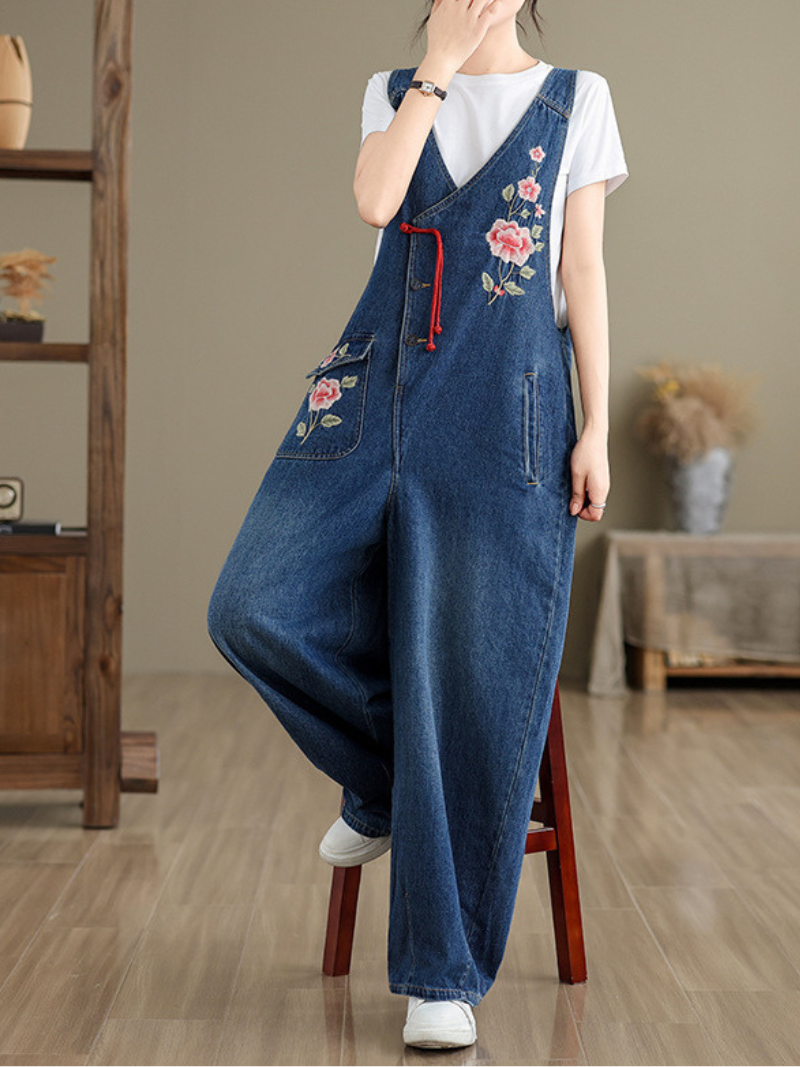 Women's Stylish Spring Embroidered Flower Overalls Dungarees Women's Stylish Spring Embroidered Flower Overalls Dungarees