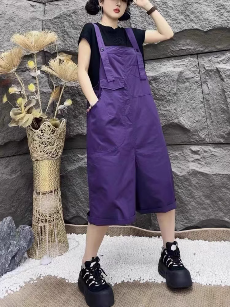 Women Comfortable And Charming Loose Bottom Dungarees Women Comfortable And Charming Loose Bottom Dungarees