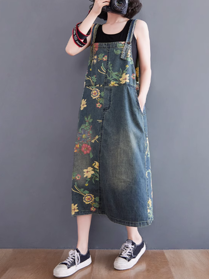 Women's Summer Retro Fashion Printed Flower Overalls Dungarees Women's Summer Retro Fashion Printed Flower Overalls Dungarees