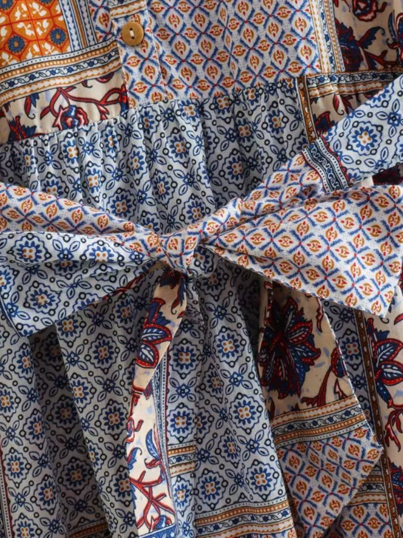 Women's Fashionable Summer Long-sleeved Printed Smock Dress -