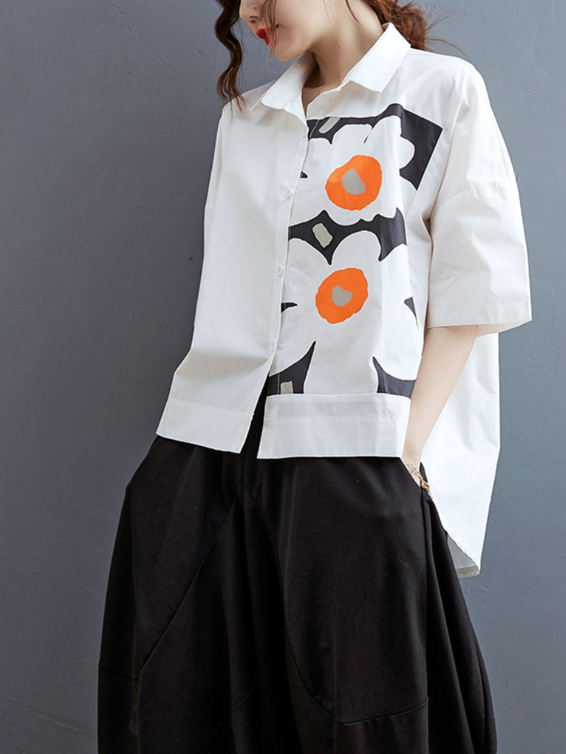 Women's Fashionable and comfort Lapel Floral Printed Shirt -